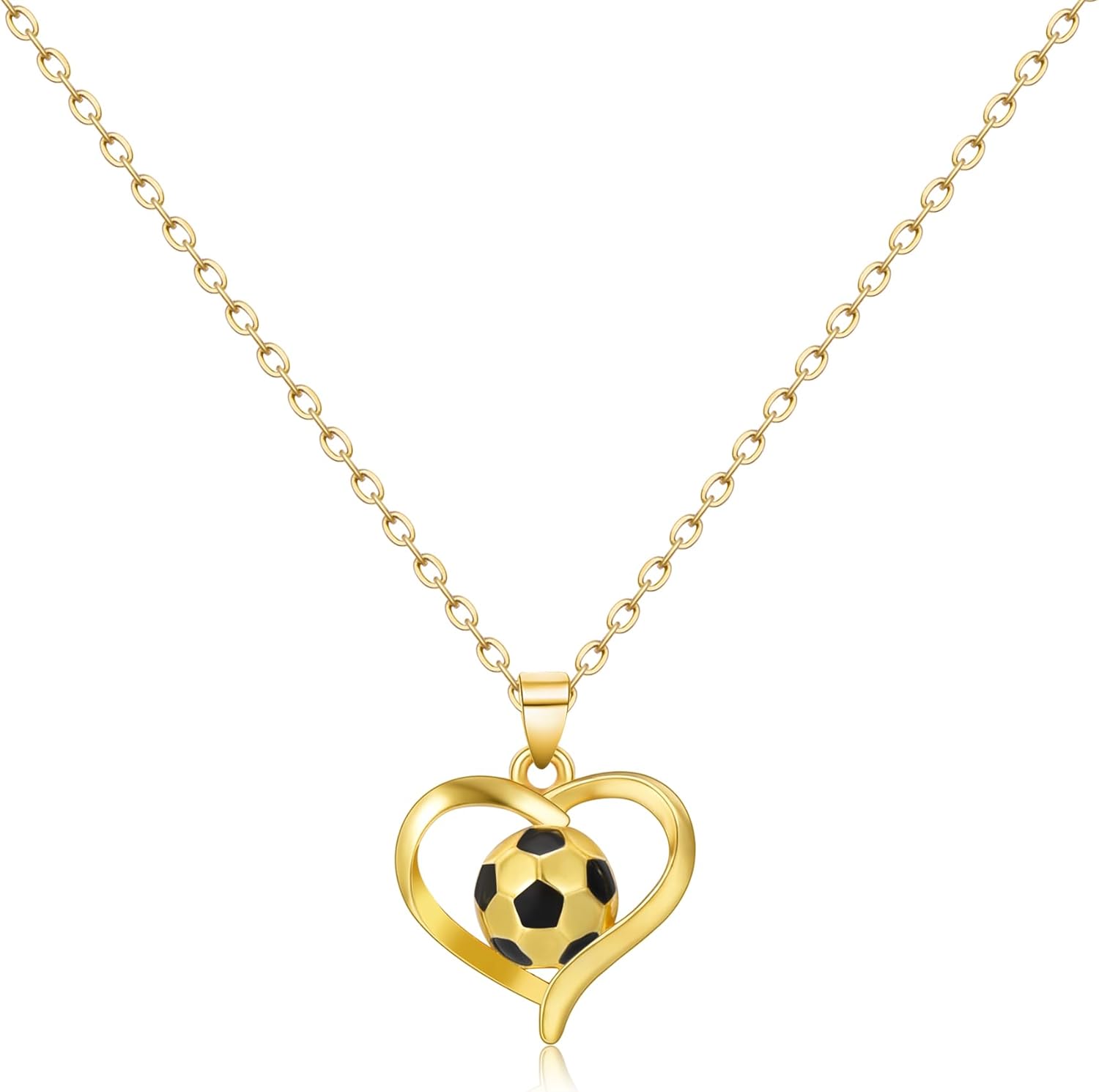 HANRESHE Soccer Ball Necklace Pendant for Girls Sports Jewelry 14K Gold Plated Soccer Cross Necklace for Boys Soccer Player Gifts