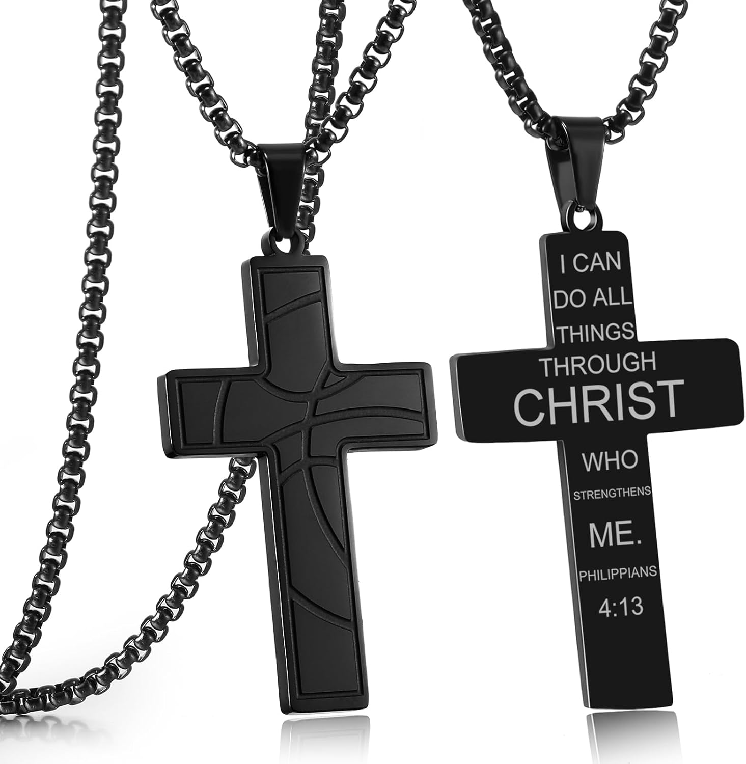 RWQIAN Basketball Cross Necklace for Men Bible Verse, Religious Faith Christian Scriptures Pendant Cross Chain, Baptism 1st First Communion Graduation Gifts for Boys Father's Day Jewelry for Him
