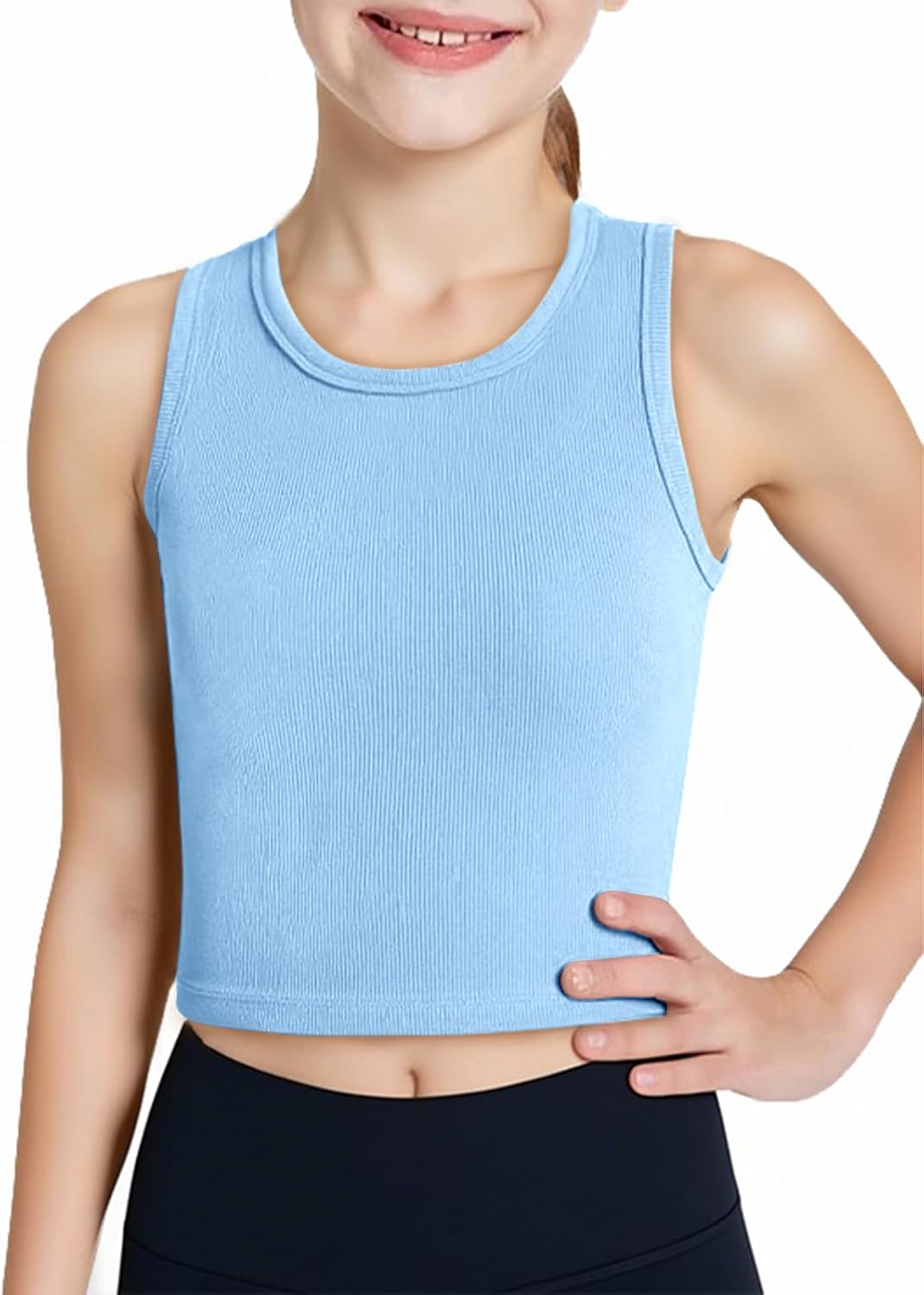 Haloumoning Girls Tank Tops Kids Athletic Ribbed Knit Sleeveless Crop Tops Basic Camisole 5-14 Years