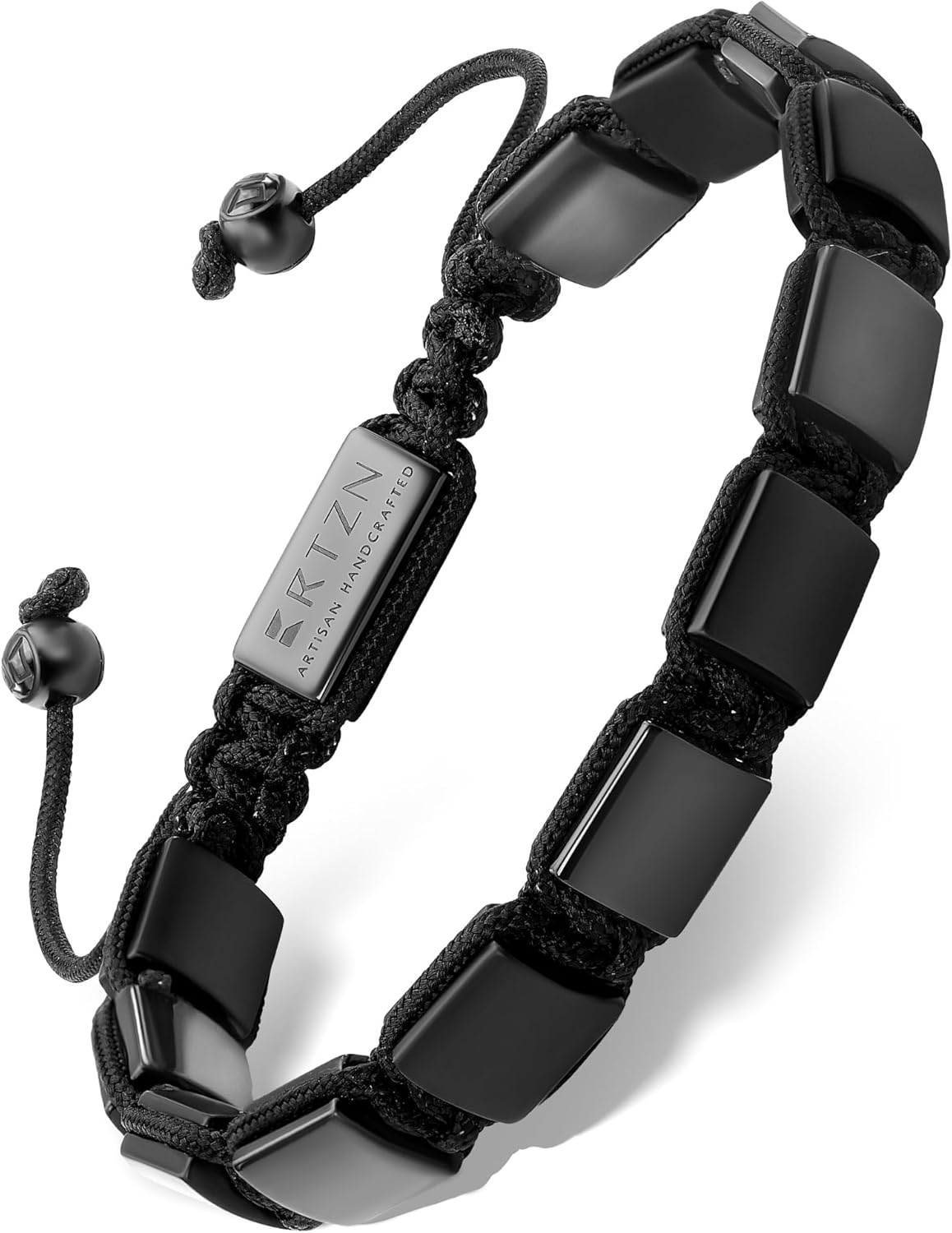 RTZN® Black Onyx Bracelet for Men – Premium Artisan Handcrafted Authentic Matte Black Beaded Bracelet for Men – 8MM Adjustable Mens Beaded Bracelets