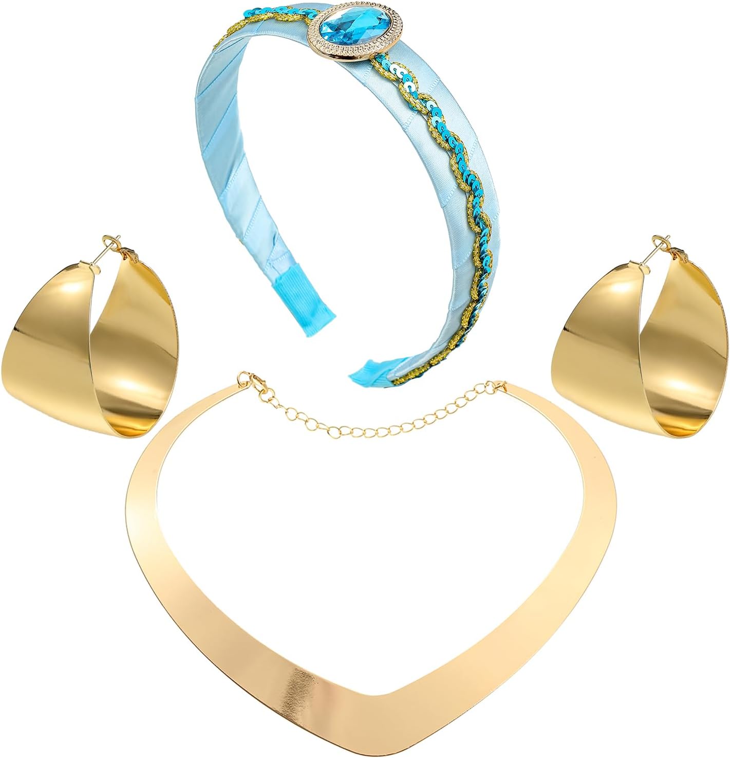 KURTCB Arabian Princess Costume Accesories,1 Headband 1 Gold Chunky Choker Necklace 2 Statement Earrings,Halloween Arab Princess Cosplay Jewelry Set for Women Jasmine