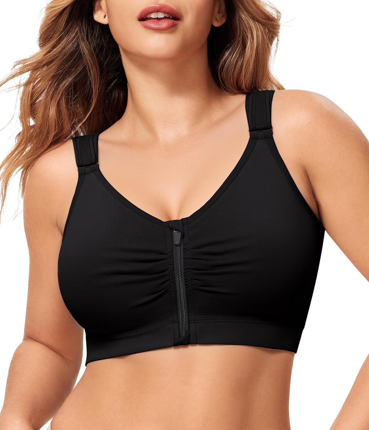 CYDREAM Zip Front Bra for Women Wireless Full Coverage Comfort Everyday Post Surgery Compression Bras Adjustable Straps