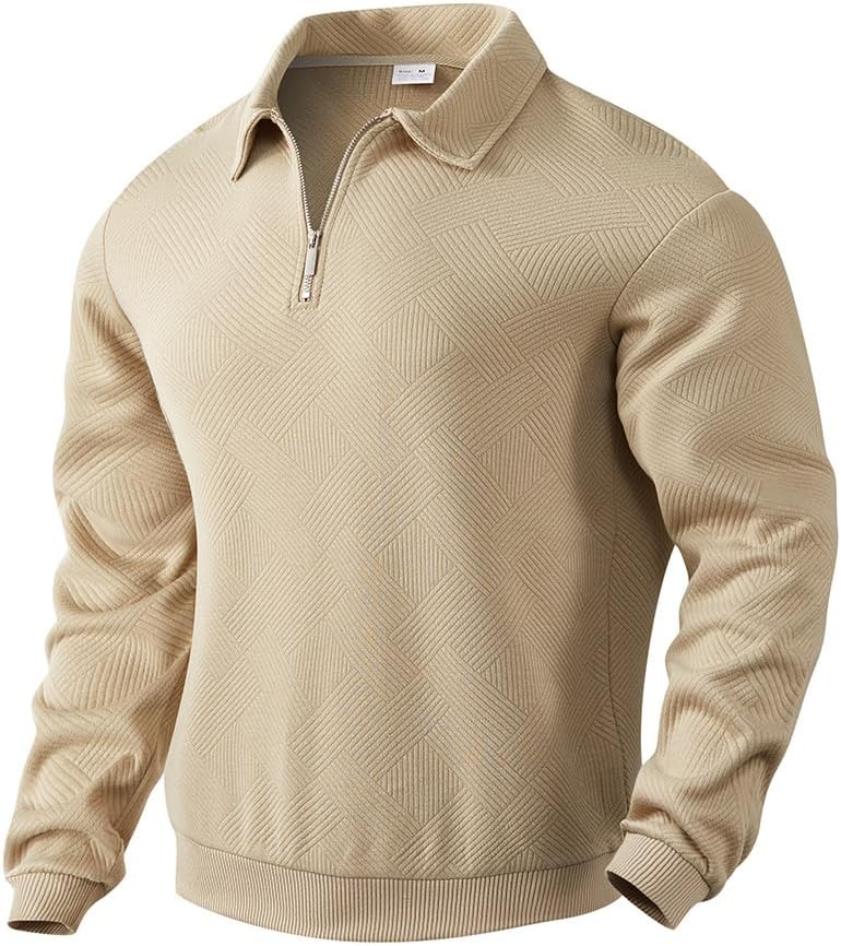 Mens Quarter Zip Pullover Mock Neck Knit Long Sleeve Sweatshirt Athletic Casual Polo Sweater