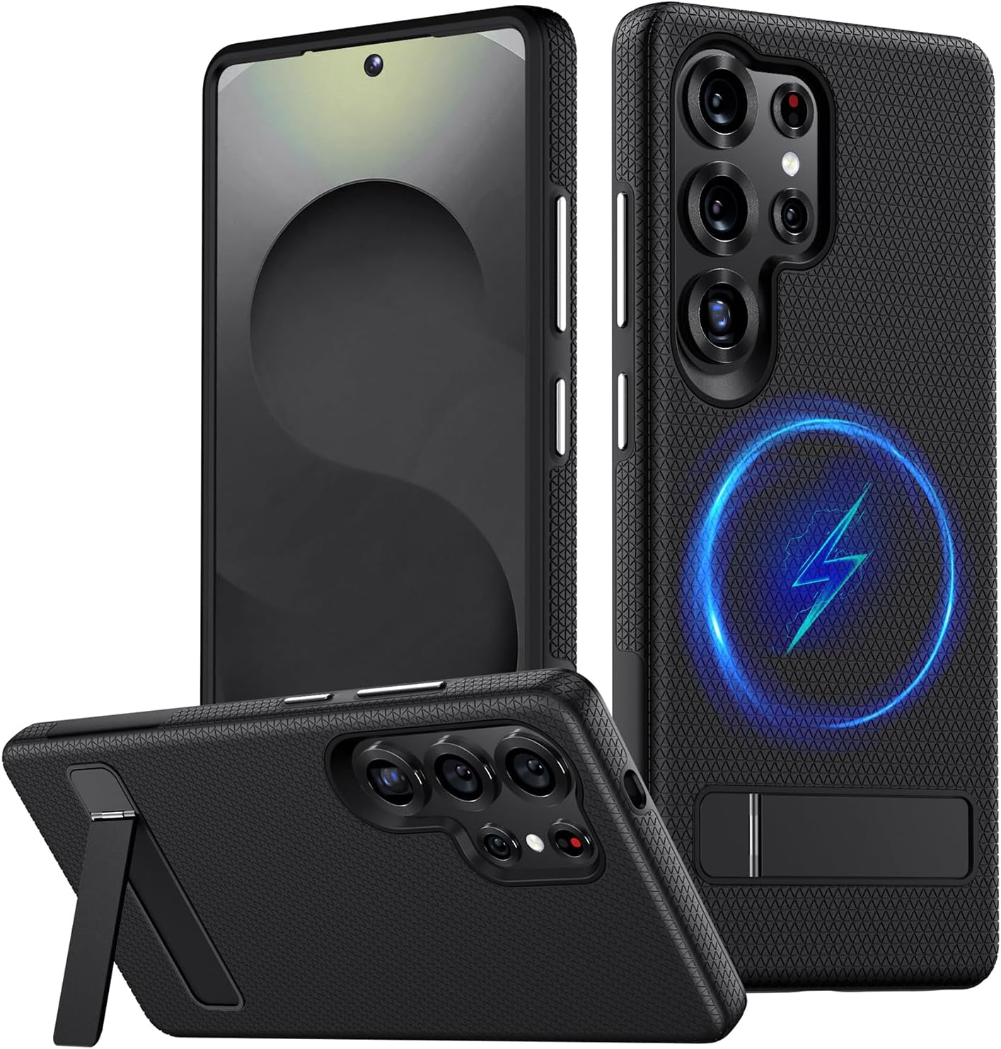 ![for Samsung Galaxy S25 Ultra Magnetic Case, [Fit for Magsafe] Military Grade Dual-Layer Shockproof Protective with Non Slip Textured Back, Phone Case with Kickstand for S25 Ultra (Black) - Image 3](https://m.media-amazon.com/images/I/71JgyV7fPRL._AC_SL1500_.jpg)