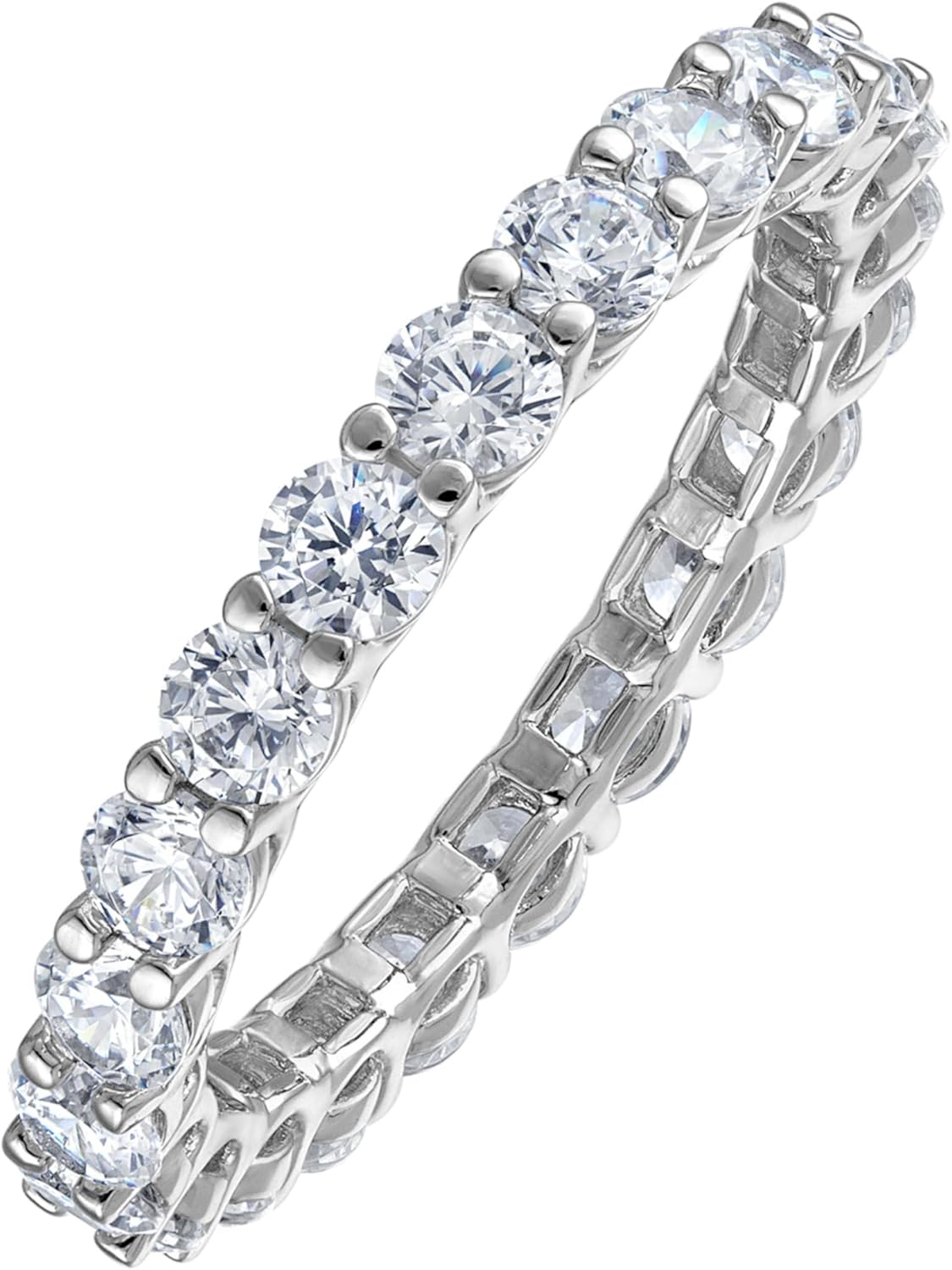 KISPER 14K White Gold Plated Eternity Band Rings for Women - AAAAA Cubic Zirconia Round Oval Emerald Cut Wedding Bands Stackable Size 5-9