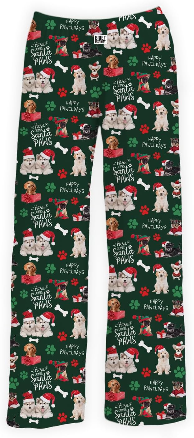 BRIEF INSANITY Lounge Pajama Pants for Men and Women | Green Chalkboard Christmas Adorable Dog Print Bottoms - Comfy, Ultra Soft, Novelty Loungewear Pants (Festive Chalkboard Dog, Large)