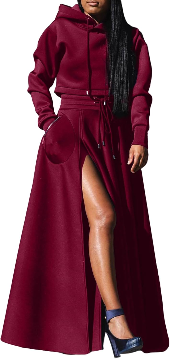 LAJIOJIO Women's 2 Piece Sets Casual Outfits,Hoodies Long Sleeves Sweatsuits and Split Maxi Skirt Lounge Sets