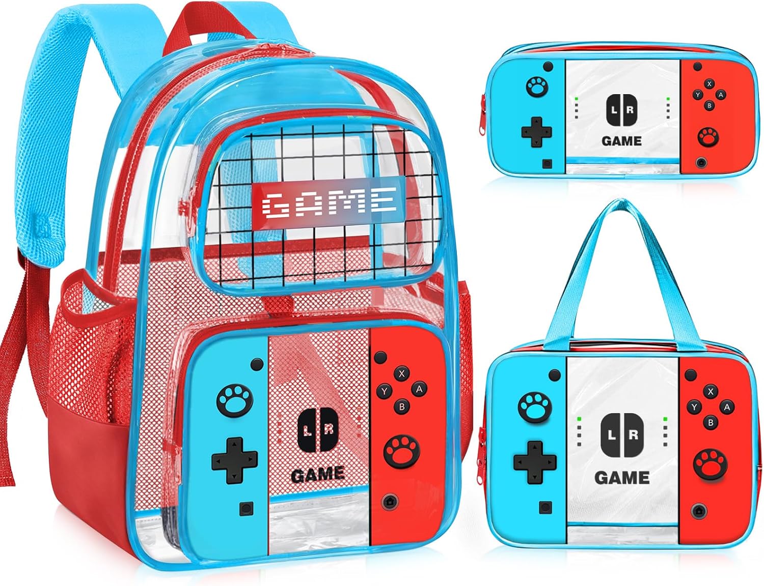 - 【CLEAR BACKPACK SET】When you purchase this back-to-school set, you will receive a stylish kids clear backpacks along with a lunch box and a pencil case. The large clear backpack measures 16.1"(h)*11.8"(l)*5.5(w), the lunch bag measures 8.6"(h)*10.6"(l)*2.8(w), and the pencil case measures 9.5"(h)*4.7"(l)*1.9(w). The game printing is not just eye-catching—it's an instant favorite clear backpack for boys who love a touch of fun and uniqueness in their school gear.