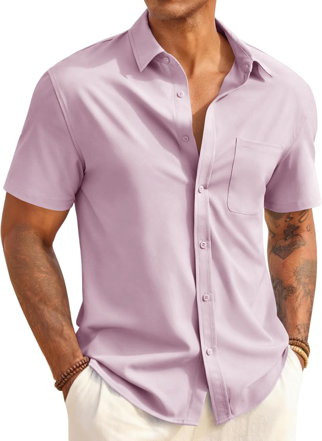 Runcati Mens Button Down Shirts Short Sleeve Casual Dress Shirt Summer Untucked Shirts with Pocket