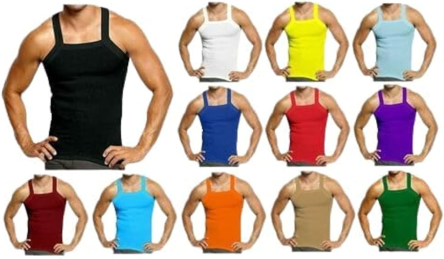 3 Packs Men's G-Unit Style Cotton Tank Tops Square Cut Muscle Rib A-Shirts Assorted Colors
