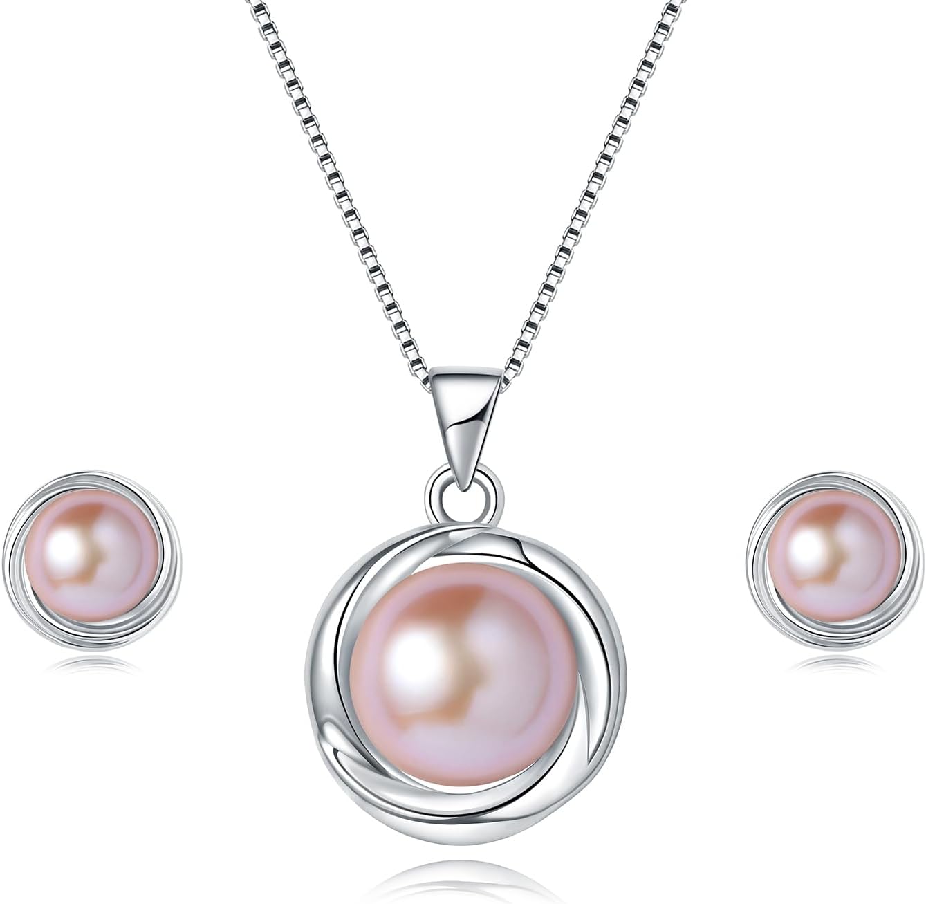 YAMI Freshwater Pearl Necklace and Earring Set for Women, 925 Sterling Silver 10MM Cultured Pearls Pendant Necklace Pearl Stud Earrings Jewelry Set, 18Inch+2" Box Chain, Gifts for Mother Wife Her