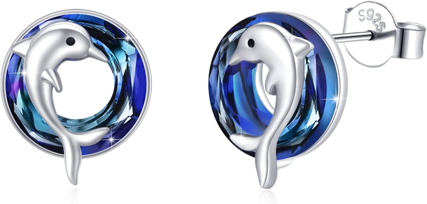 925 Sterling Silver Animal Earrings Highland Cow/Hummingbird/Ladybug/Otter/Shark/Dolphin Stud Earrings Hypoallergenic Animal Jewelry Gift for Her Women Birthday Anniversary Halloween Christmas