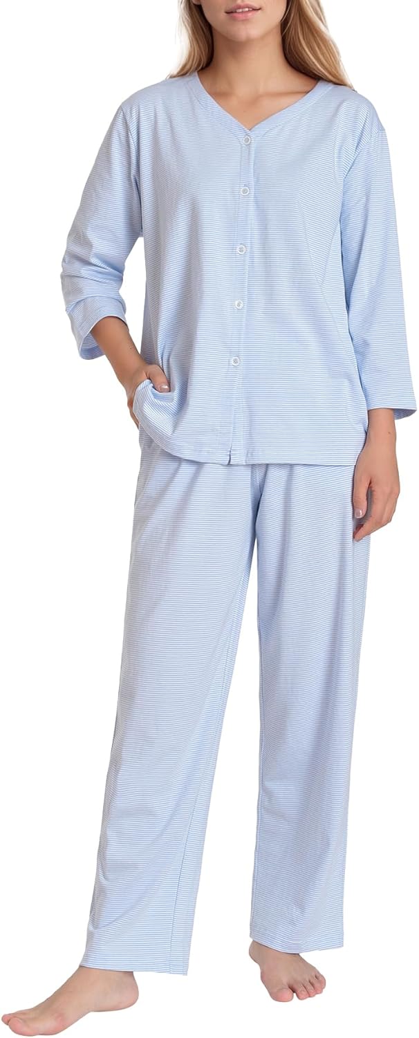 Latuza Women's 3/4 Sleeve Pajama Set Striped Cotton Button Down Pjs