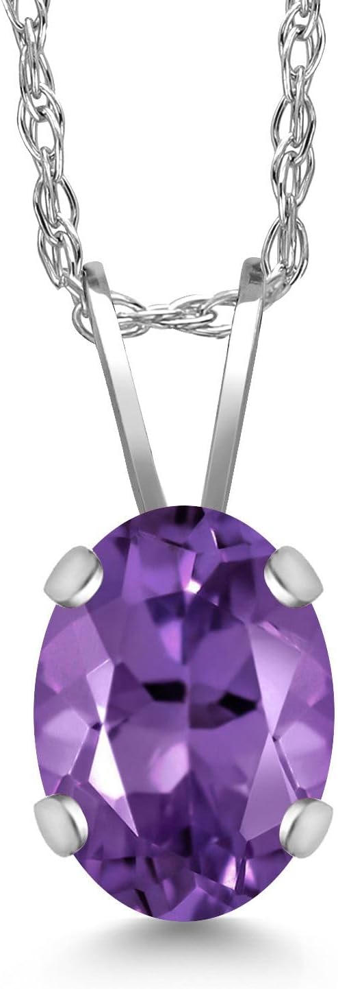 Gem Stone King 0.75 Ct Oval Purple Amethyst 14K White Gold Pendant with Chain
