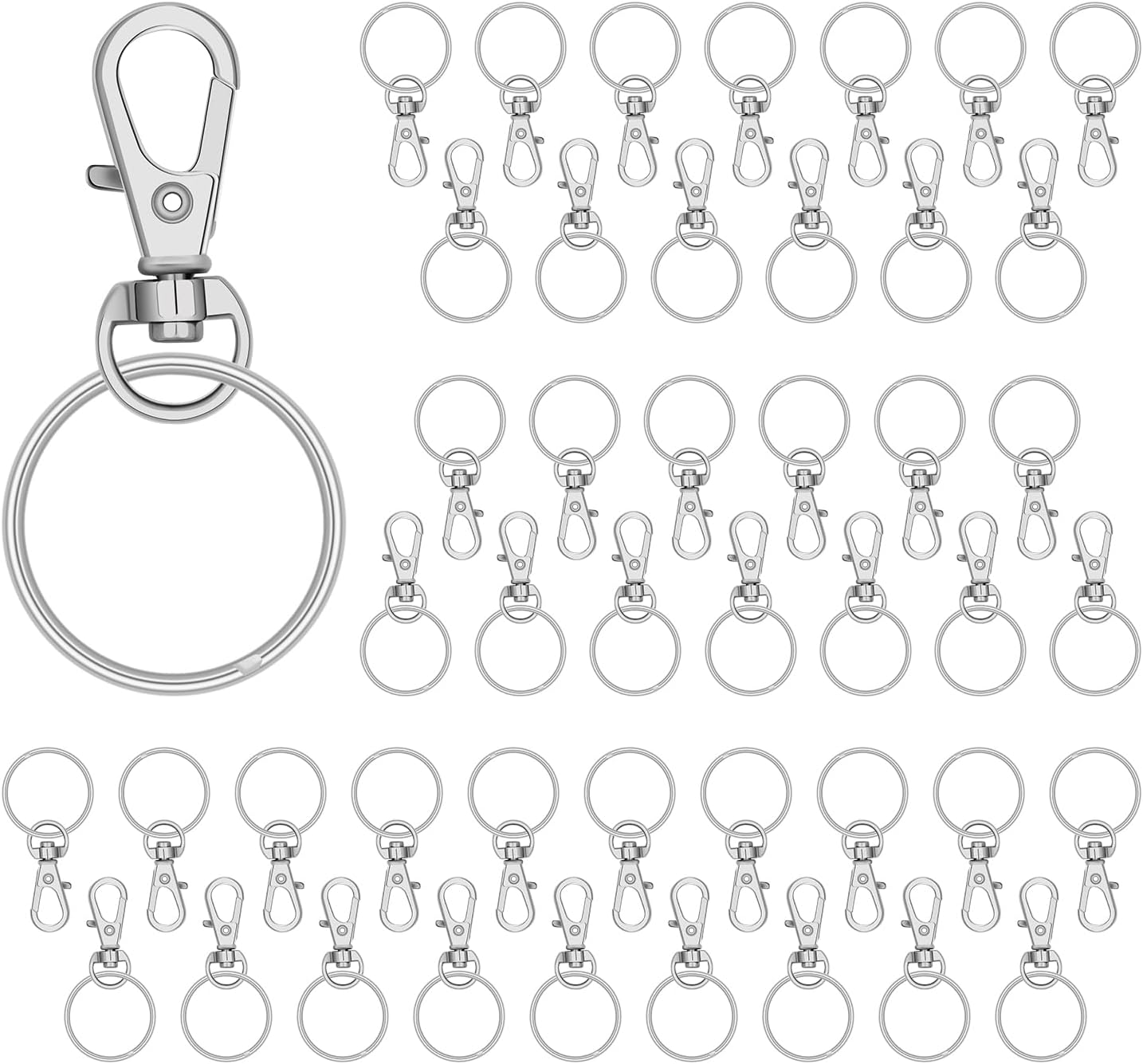 30 Sets of Mini Zinc Alloy Swivel Lobster Claw Clasps with Detachable Key Rings – 360° Rotating Hooks for DIY Crafts, Jewelry Making, Keychains, and Accessories