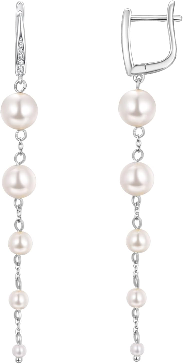 AENEAS Pearl Long Dangle Earrings for Women S925 Sterling Silver Glod Plated/Silver Pearl Drop Earrings Jewelry Gifts for Wedding Anniversary