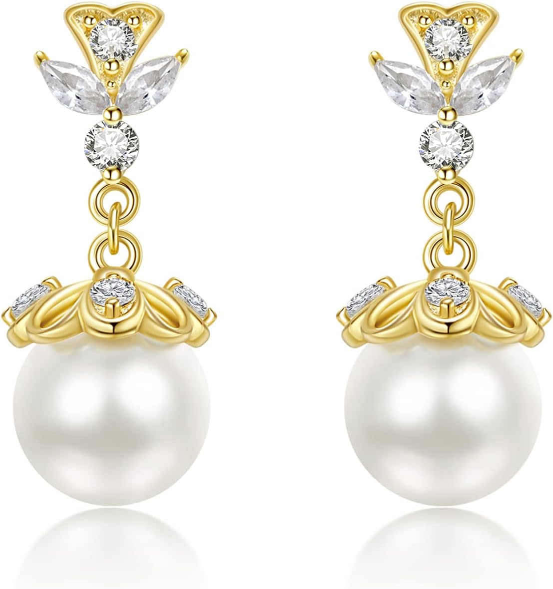 AENEAS Valentines Day Gifts for Women Pearl Dangle Drop Earrings for Women Gold Plated Sterling Silver Pearl Dangling Stud Earrings Wedding Jewelry Anniversary Christmas Birthday Gift for Wife Her Mom
