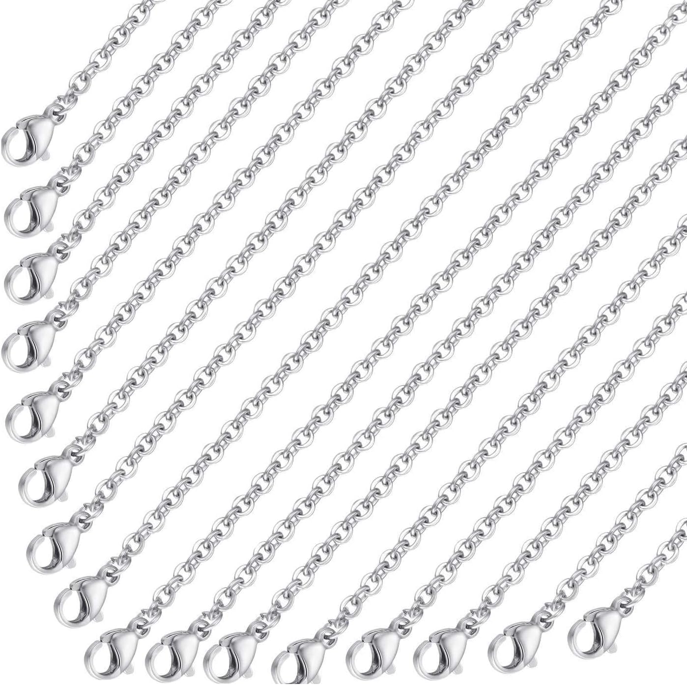 Stainless Steel Necklace Chain Bulk, 20 Pack Silver Plated DIY Cable Link Chains, Hypoallergenic, Jewelry Making Accessories (17+19 inches)
