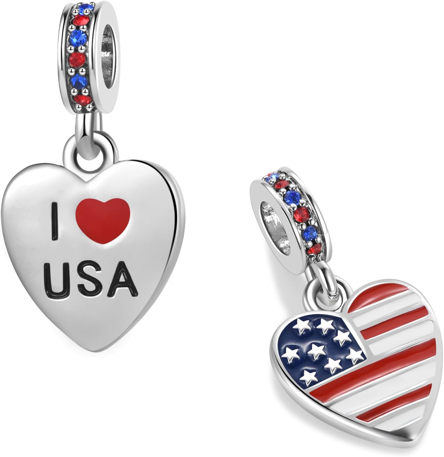 NARTGO Military Family Mom Dad Wife Sister Charm I Love USA American Flag Bead Compatible with Pandora Charms Bracelets