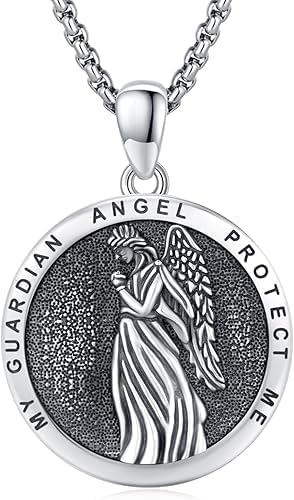 Guardian Angel/St Michael Necklace 925 Sterling Silver Christian Religious Patron Saint Medal Necklace Jewelry Gifts for Women