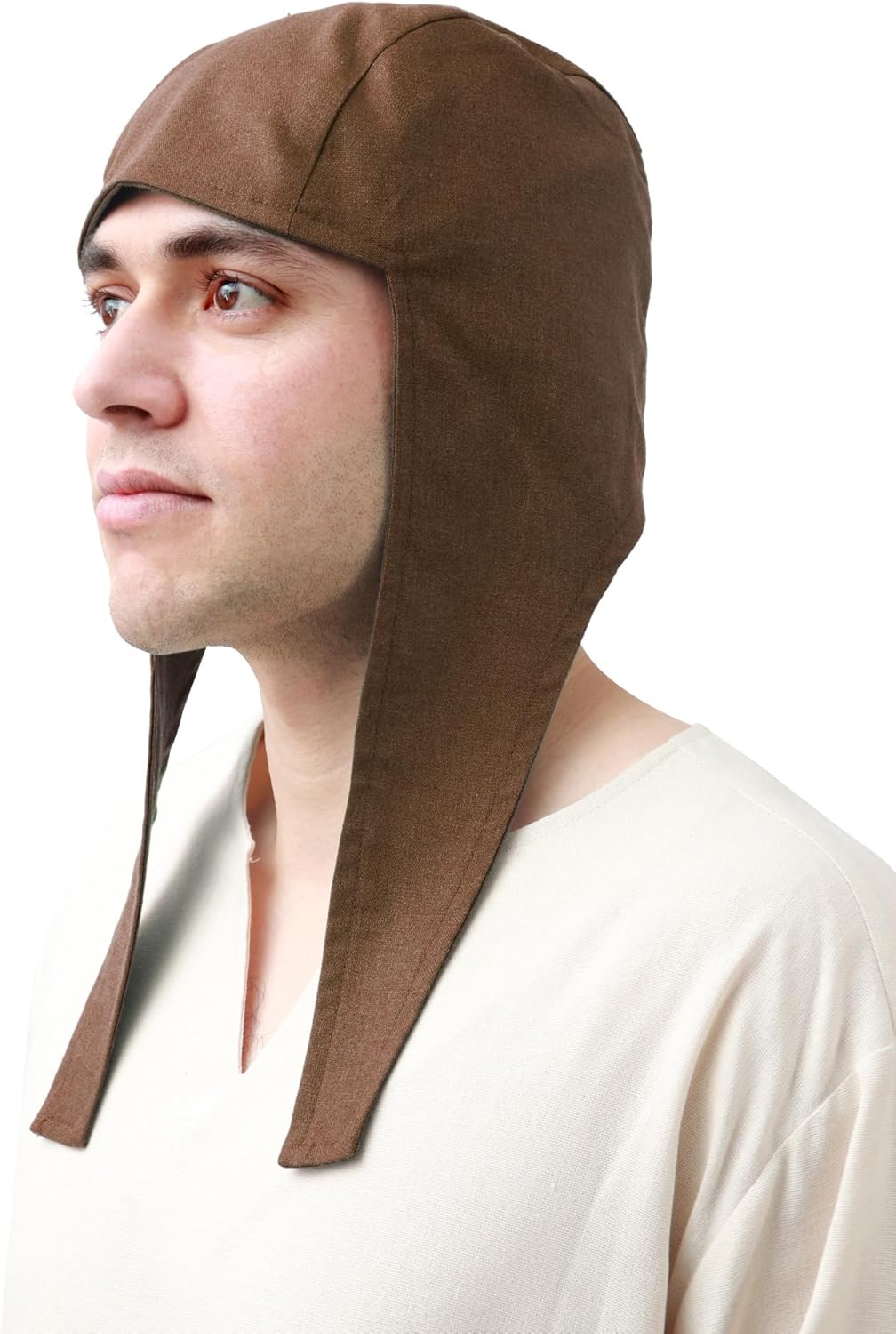 FURPHI Medieval Coif Cap Linen Hats with Ear Flaps Renaissance Bonnet Halloween Christmas Costume
