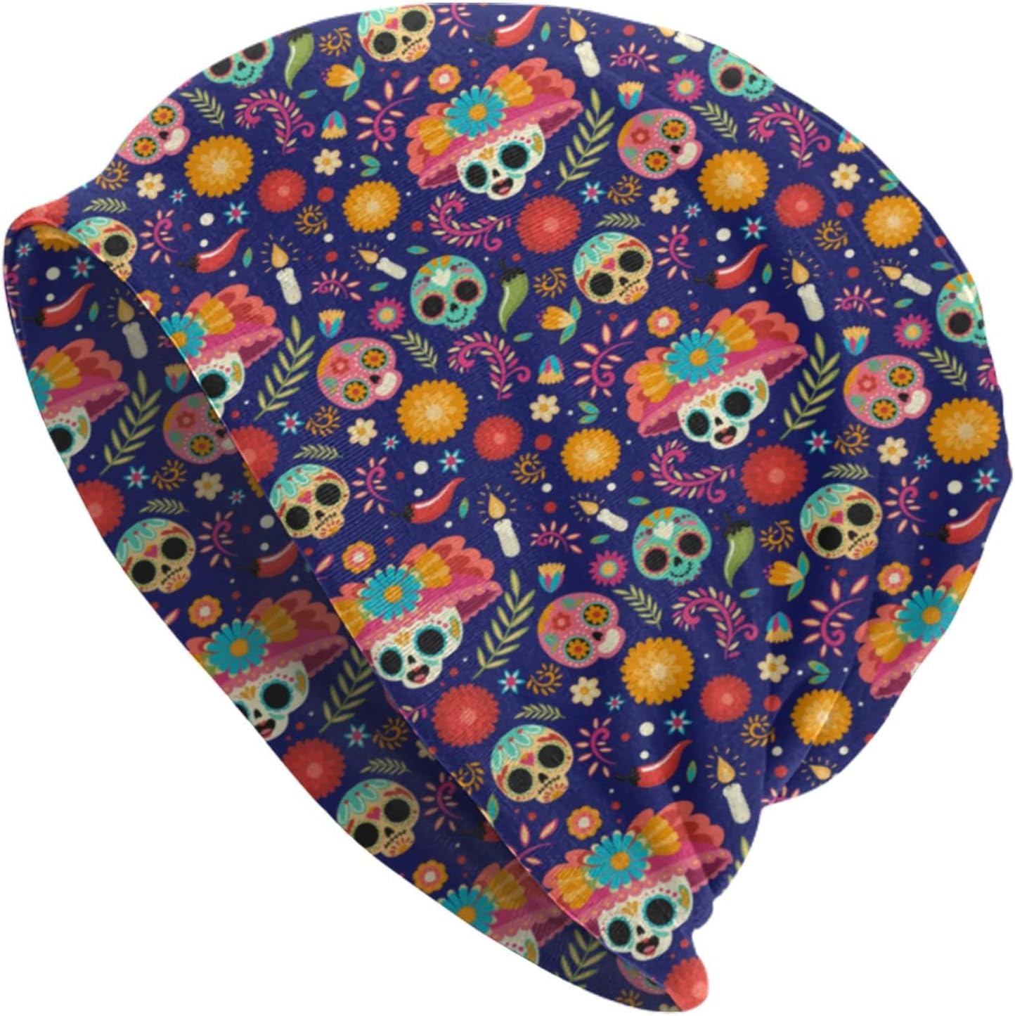 LAIPUTER Mexican Beanie Standard Closed Chemo Knitted Hats Baggy Slouchy Skull Cap Cancer Headwear for Women Men