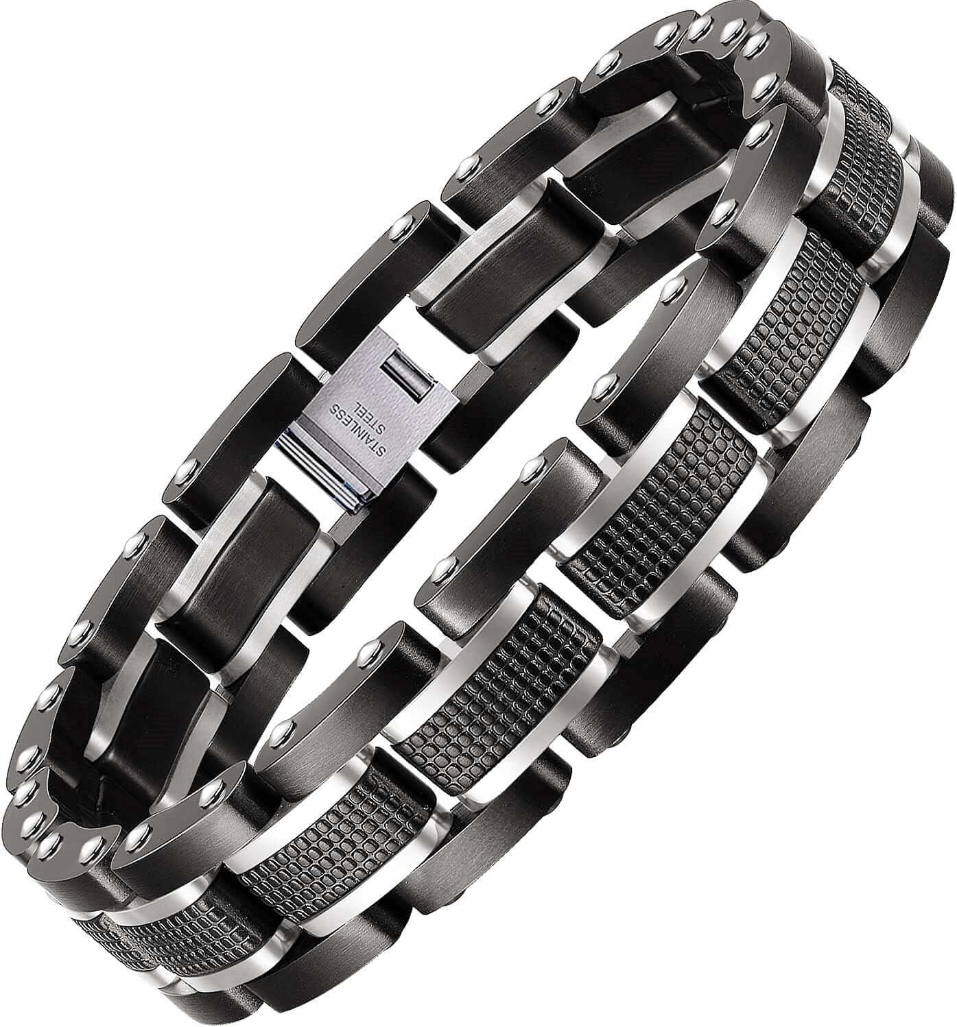 Holizaly Men's Stainless Steel Two Tone Square Link Bracelet, Black and Blue Ion Plated Black
