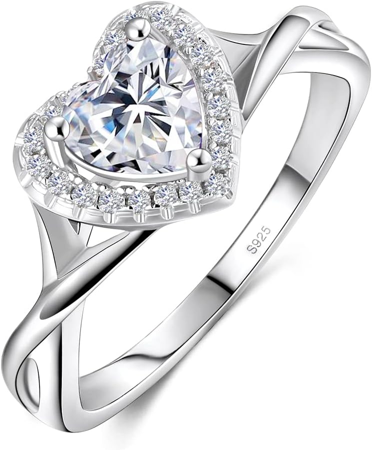 Promise Ring for Her 925 Sterling Silver Created Ruby Blue Sapphire Emerald Diamond Heart Promise Wedding Engagement Ring for Mom Wife Girlfriend Her Anniversary Mother's Day