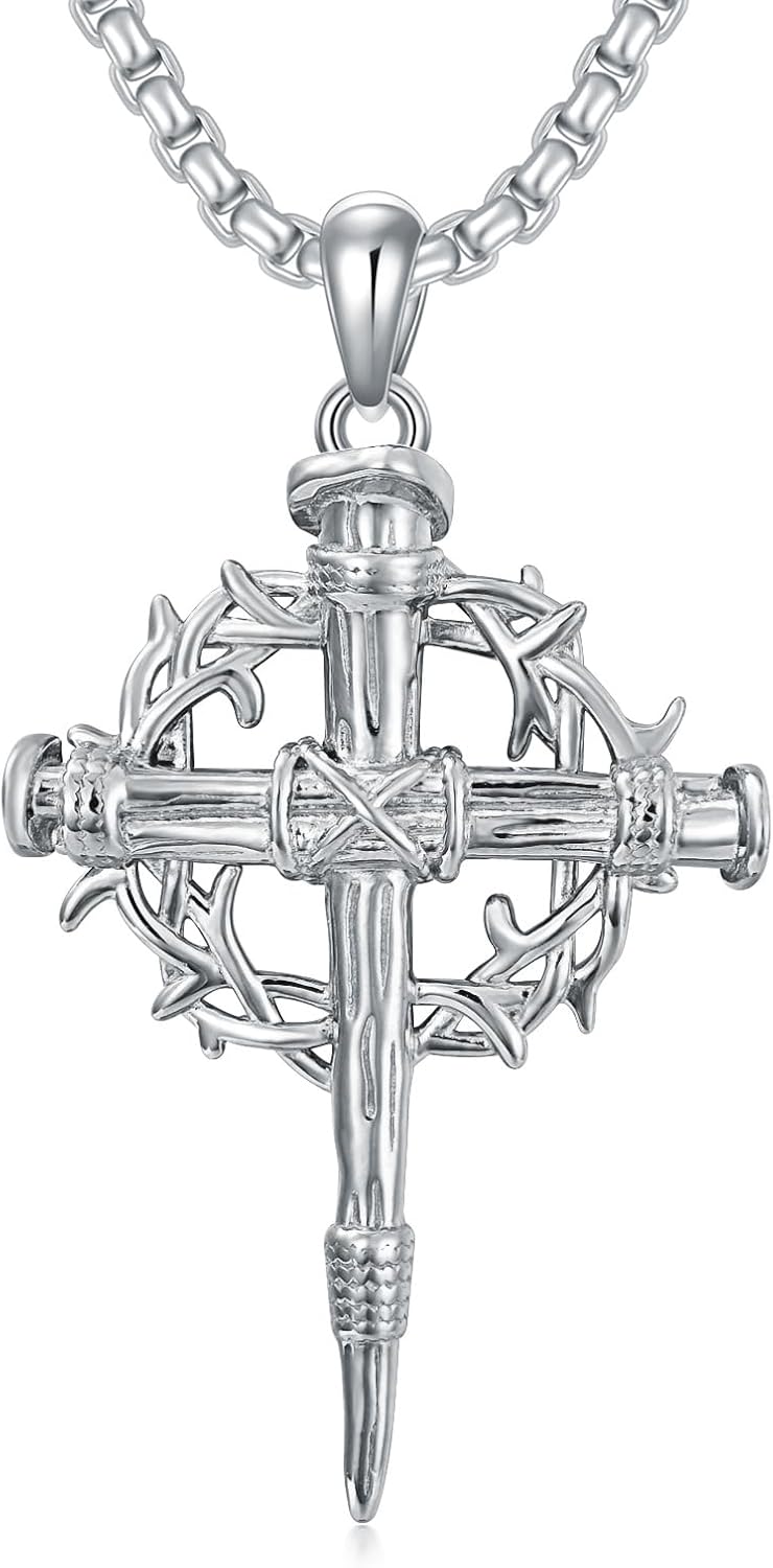 Nail Cross Necklace 925 Sterling Silver/18K Gold Plated/Black Christian Cross Pendant Jewelry for Men Women, with Stainless Steel Chain 22+2 Inch
