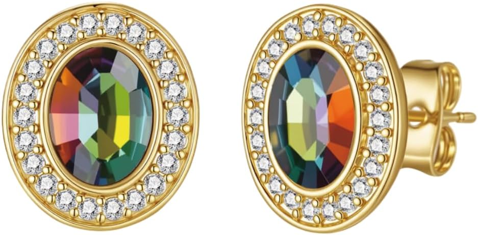 EVEVIC Austrian Crystal Halo Oval Stud Earrings for Women Trendy,14k Gold Plated Hypoallergenic Earring Jewelry Gift