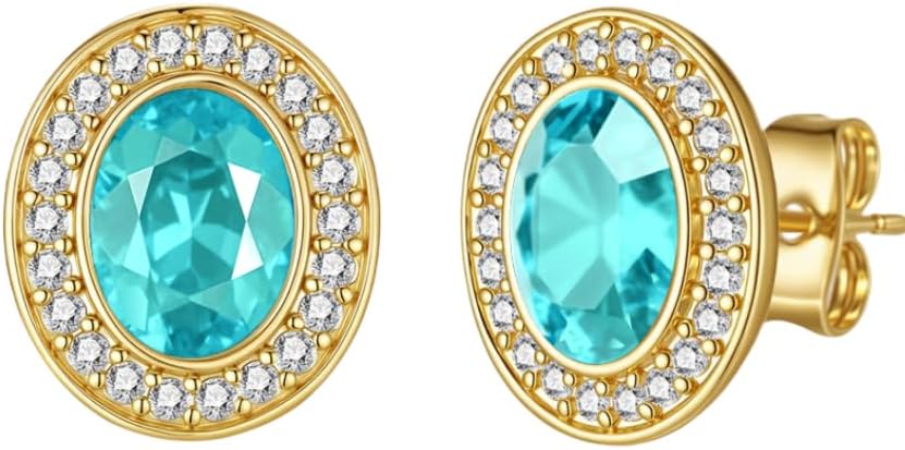 EVEVIC Austrian Crystal Halo Oval Stud Earrings for Women Trendy,14k Gold Plated Hypoallergenic Earring Jewelry Gift