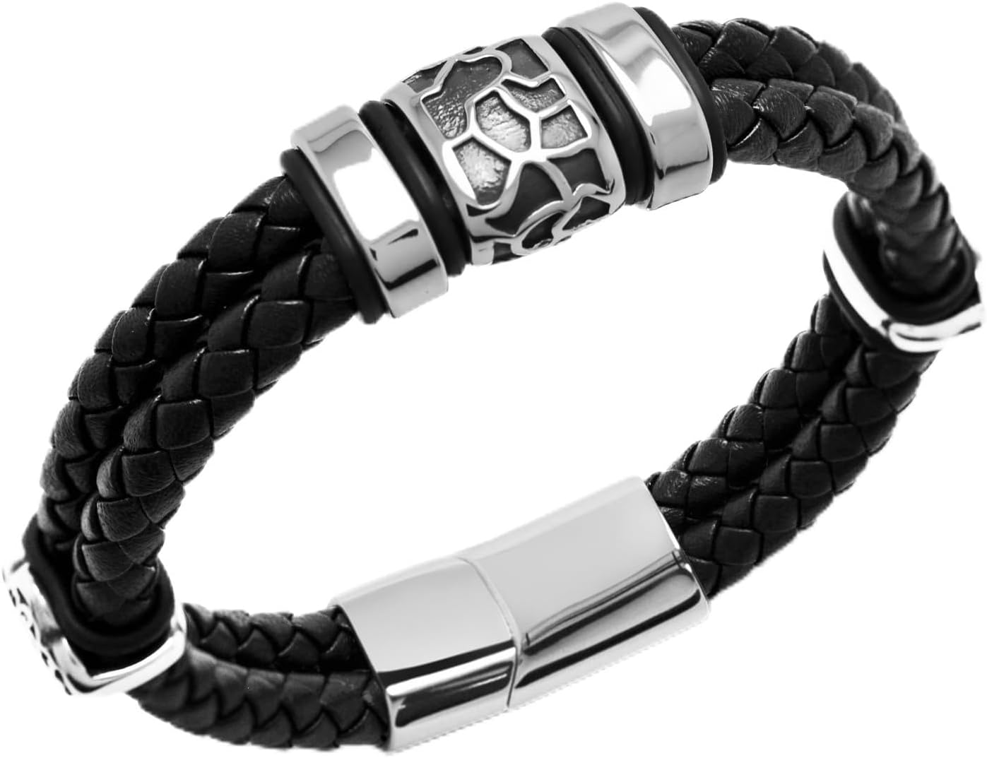 AIZU Braided Leather Wrap Bracelet - Black Brown Genuine Woven Leather Bracelet with Stainless Steel Magnetic Clasp for Men's Wristband Cuff - Mens Cross Christian Bracelet Leather