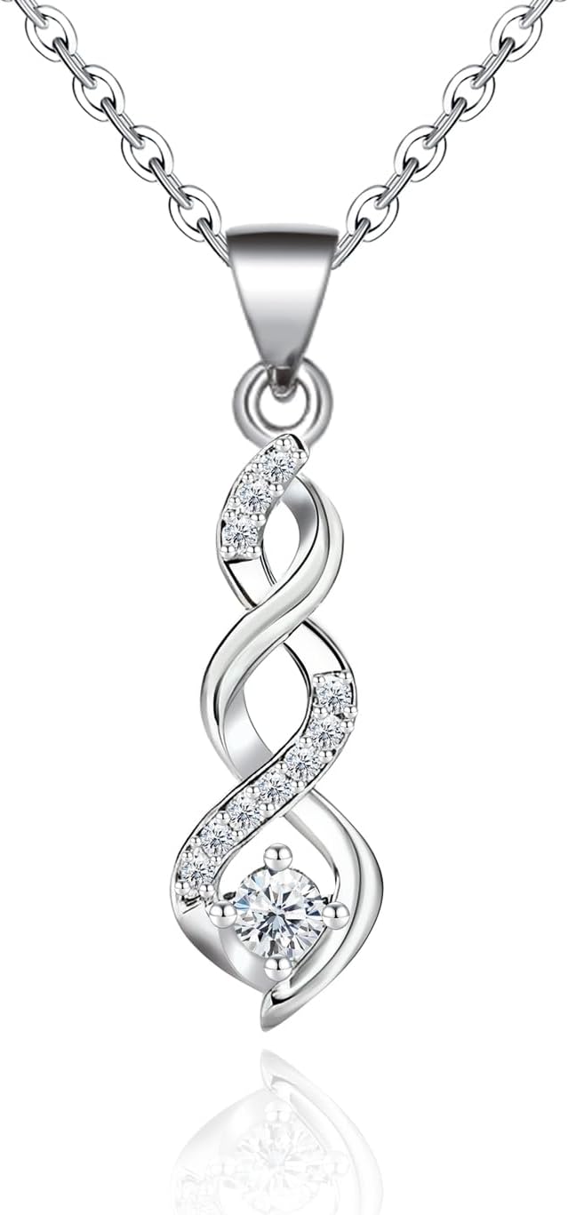 Sterling Silver Twisted - Design Pendant Necklace with Cubic Zirconia for Women Fashion Jewelry Necklace for Women