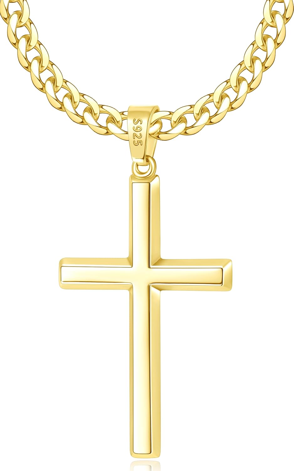 925 Sterling Silver Cross Necklace for Men, 14k Gold Plated Sterling Silver Cross Pendant with Top Craftsmanship 4mm Stainless Steel Cuban Chain Necklace for Men Boys Women 16-26 Inch