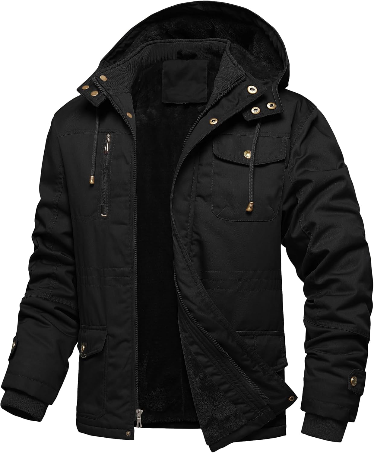 Men's Thick Winter Jackets Fleece Lined Thick Jackets Hood Work Jackets Coat Cotton Military with Cargo Pockets