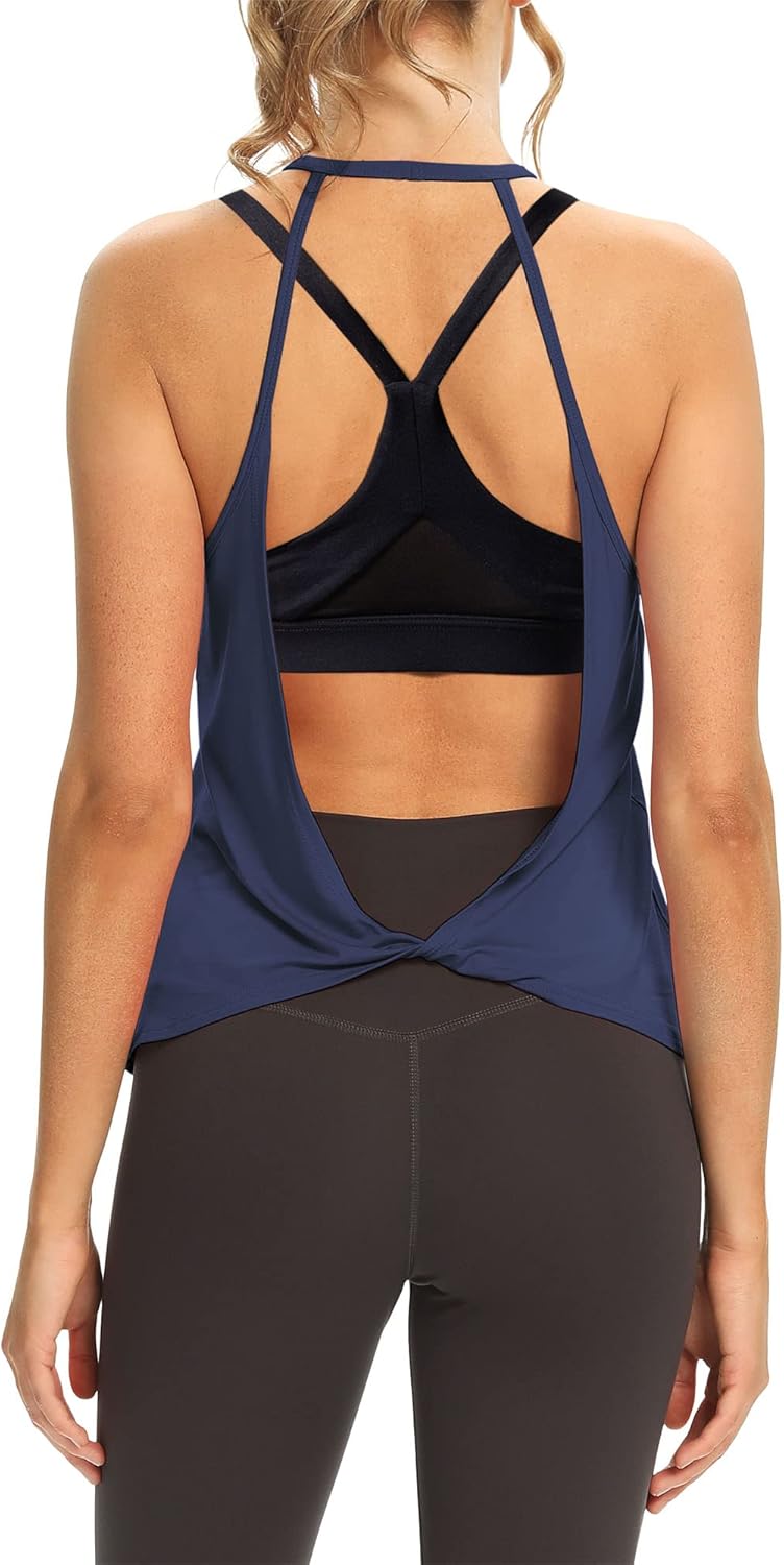 Mippo Womens Open Back Workout Tops Sleeveless Halter Gym Athletic Tank Tops Loose Fit
