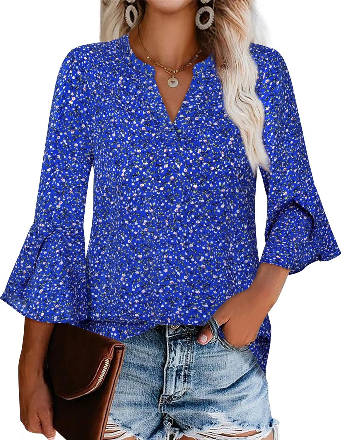 Gaharu Women's Work Blouses Ruffle 3/4 Sleeve Dressy Top V Neck Casual Chiffon Tunic Blouses Business Shirts