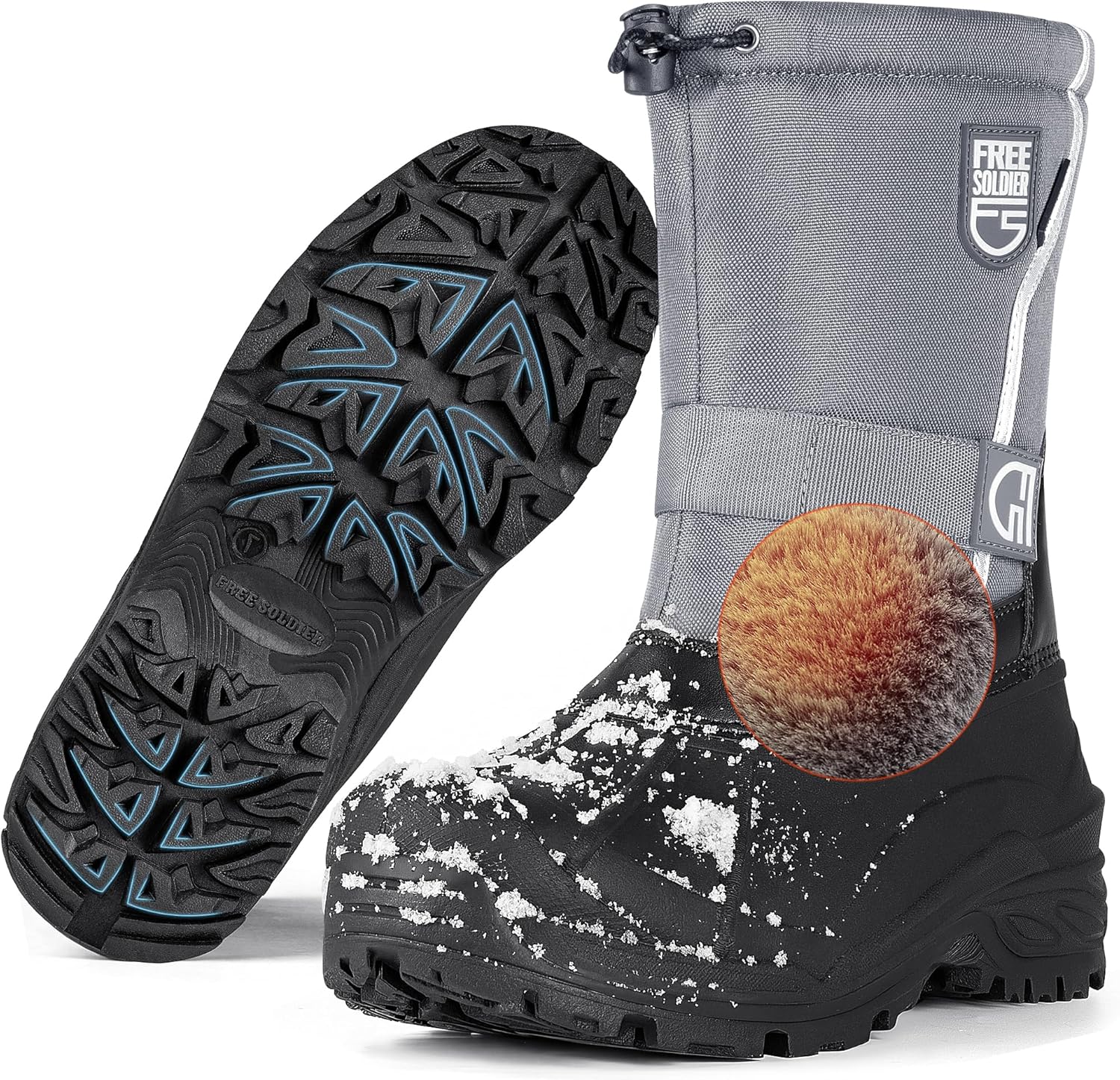 FREE SOLDIER Mens Snow Boots Insulated Waterproof Hiking Winter Shoes Nonslip Outdoor Ankle Cold Weather Boots with Warm Inner