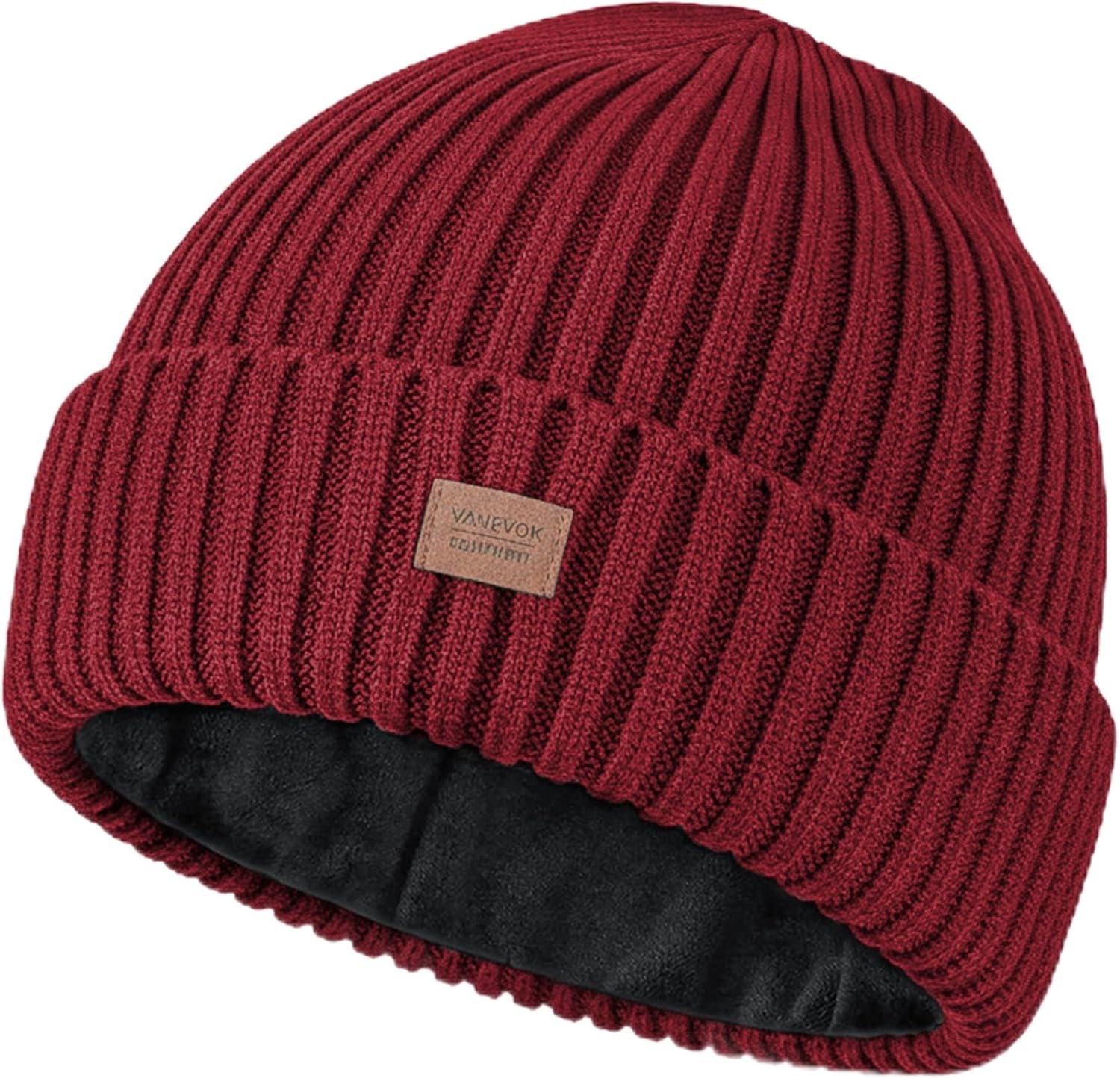 Merino Wool Beanie Hat for Men Women - Thermal Knitted Winter Hat for Large Heads Hiking Running Cap Wrap for Cold Weather
