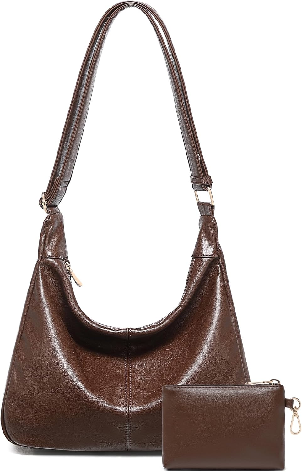 Hobo Bag for Women with Mini Purse Soft Vegan Leather Slouchy Shoulder Crossbody Handbag 2025 Fall Tote
