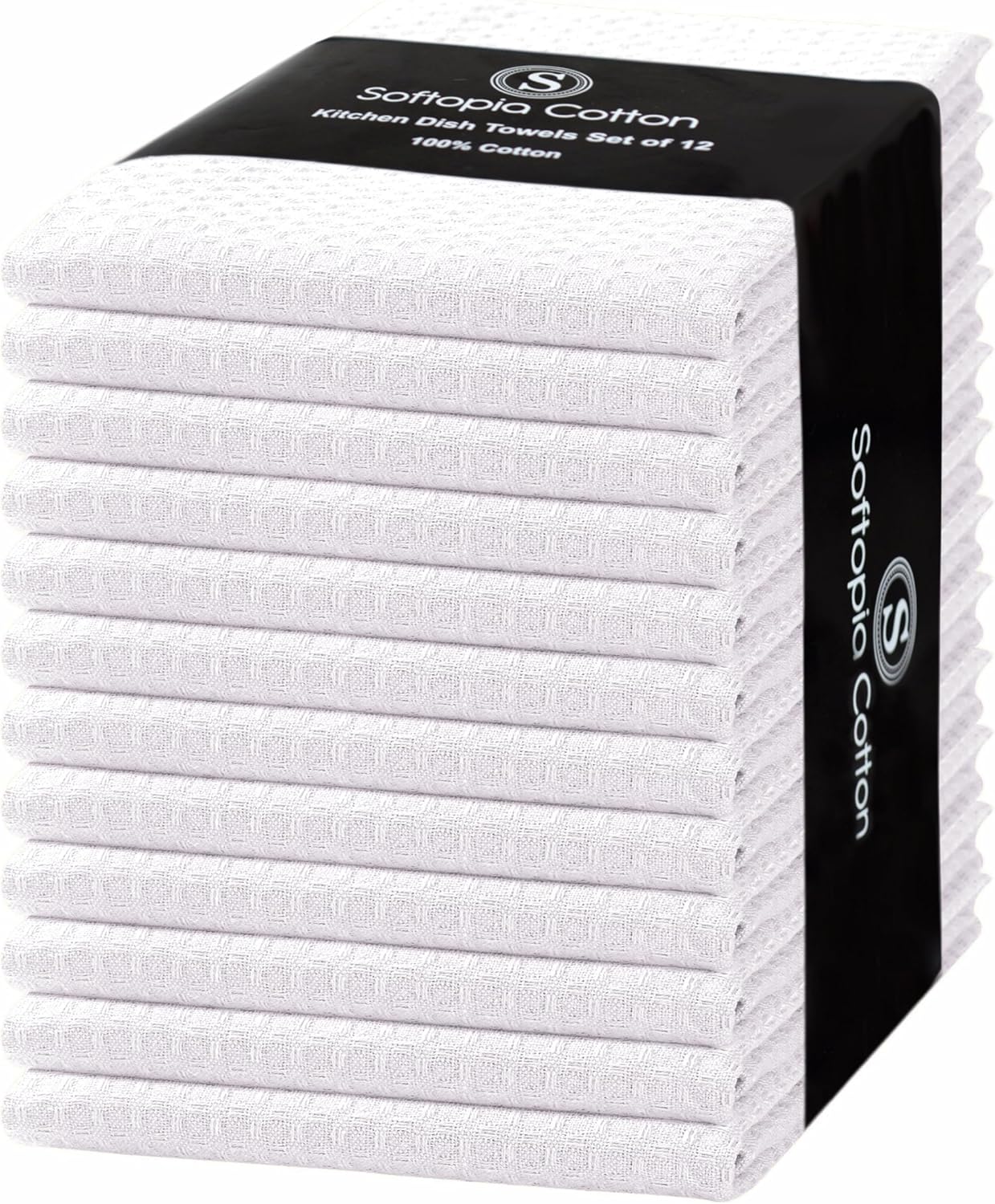 White Waffle Kitchen Dish Towels 100% Cotton, Soft, Absorbent, Quick Drying, Multipurpose Use, Bar & Hand Towels, 16x26 Inches, Durable, Machine Washable, Reusable, Set of 12