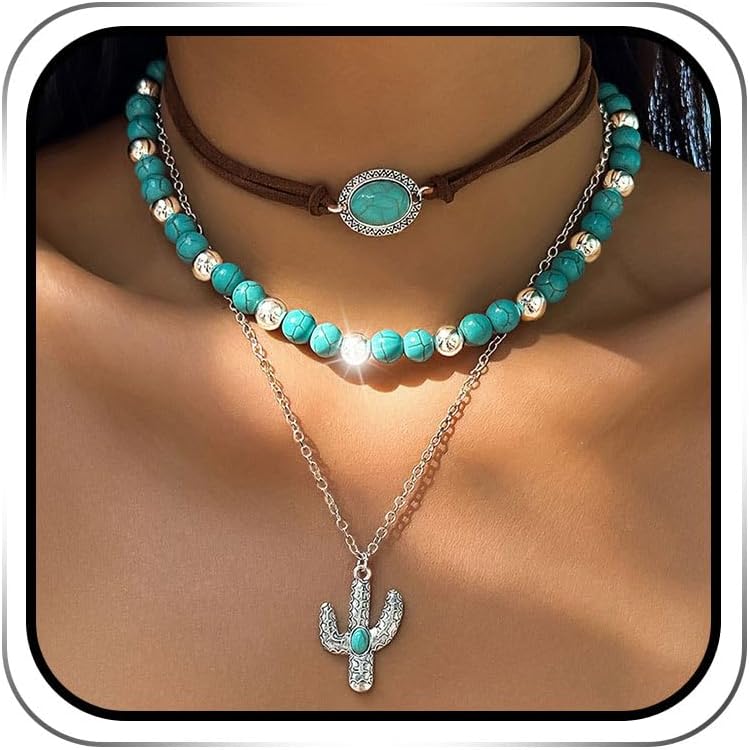 Jovono Boho Choker Necklace Silver Cowgirls Boot Pendant Necklaces Turquoise Western Necklace Chain for Women