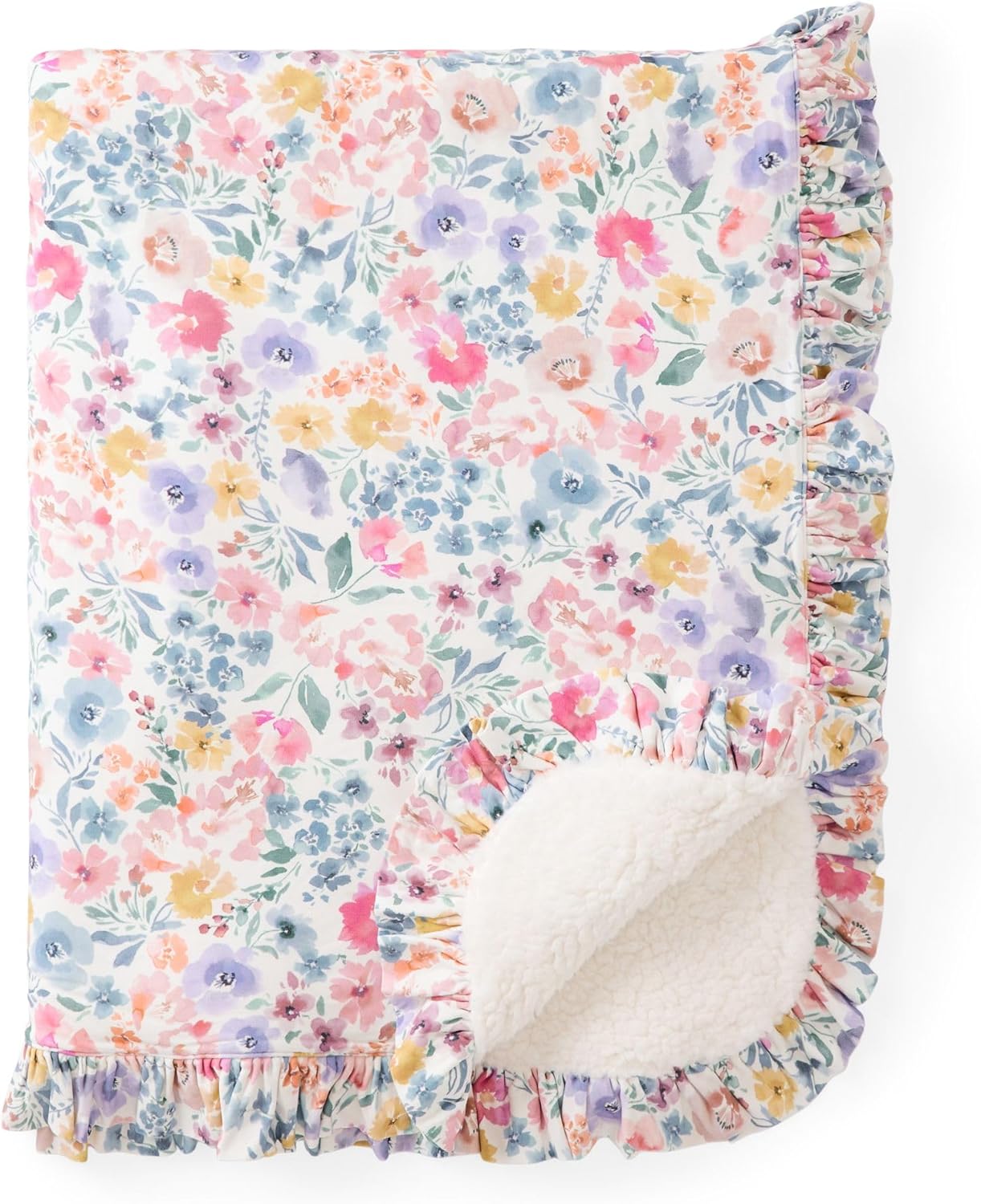 Little Sleepies Newborn Mini Ruffle Blanket, Soft Viscose from Bamboo Sherpa Baby Blanket, Girl Gifts, Baby Essentials, Tiny Blooms, 30 inches x 40 inches