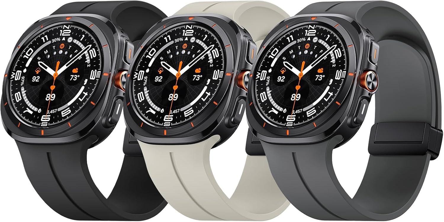 - Lugless & Magnetism Design: The silicone band for Samsung Galaxy Watch Ultra 47mm is designed without lugs and blends perfectly with the dial for a beautiful and stylish look. The strong magnetic buckle holds the band securely in place without worrying about it falling off, and allows for any length adjustment. It's quick and easy to put on and take off by simply lifting the end of the band and pulling back the buckle.One adjustment for worry-free use