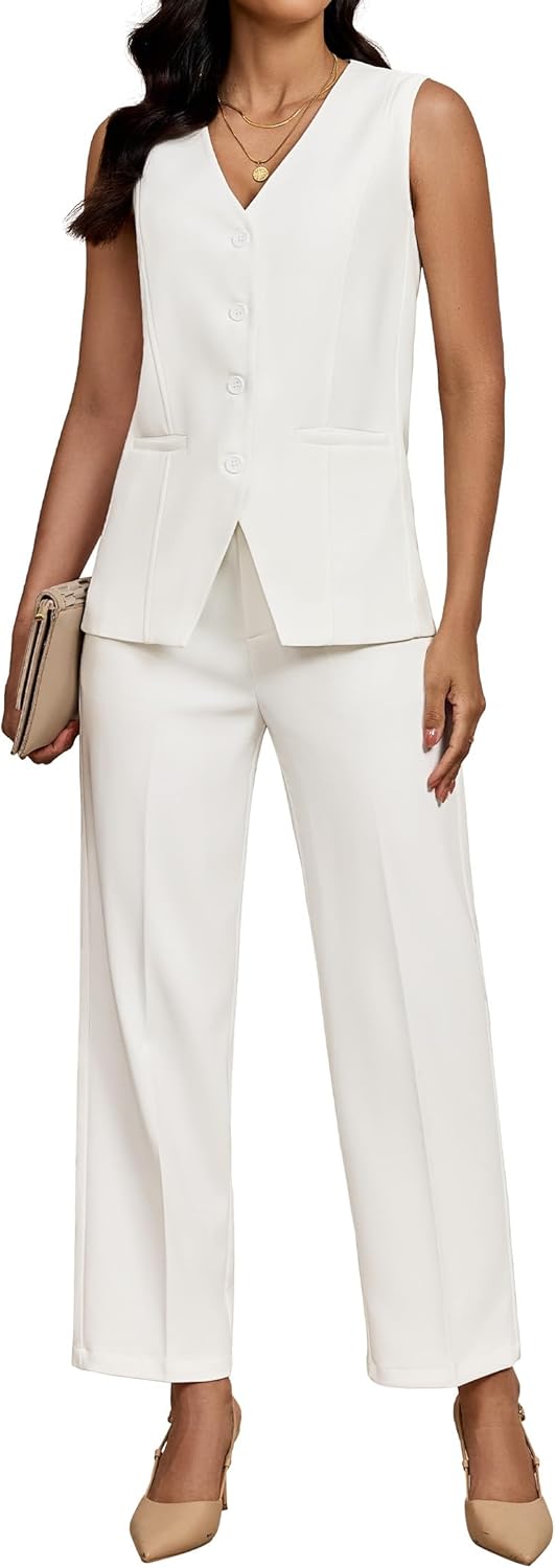 luvamia Vest Pants Suits for Women Dressy 2 Piece Sets Sleeveless Blazer Straight Leg Dress Pants Business Casual Outfit
