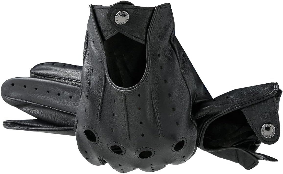 LIBO Genuine Leather Driving Gloves for Men Women, Unlined Full Finger Motorcycle Gloves, Button Closure (Non Touchscreen)