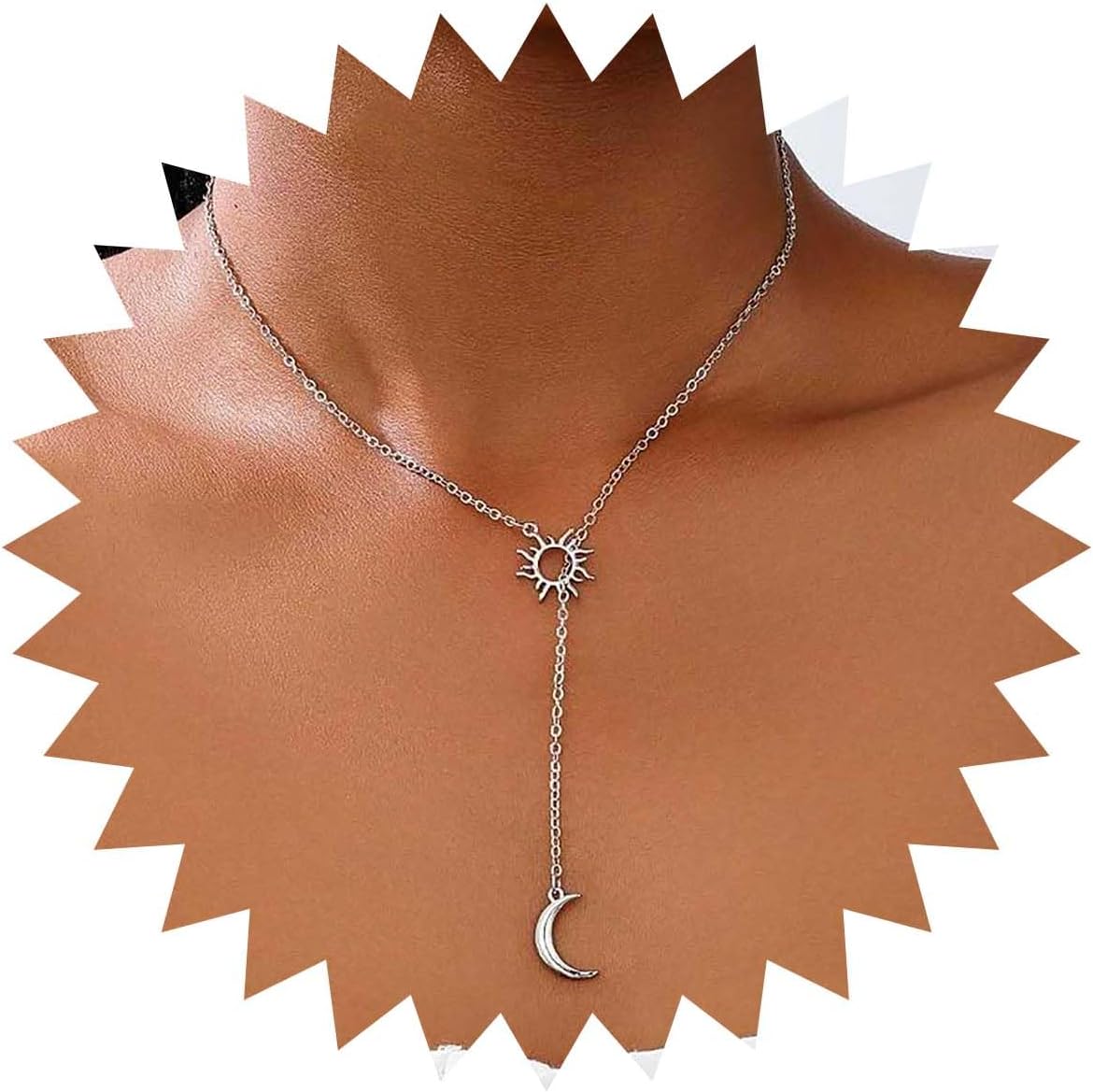 Andelaisi Boho Sun Pendant Necklace Gold Moon Dangle Drop Vintage Y Lariat Adjustable Hollow Choker Jewelry for Women