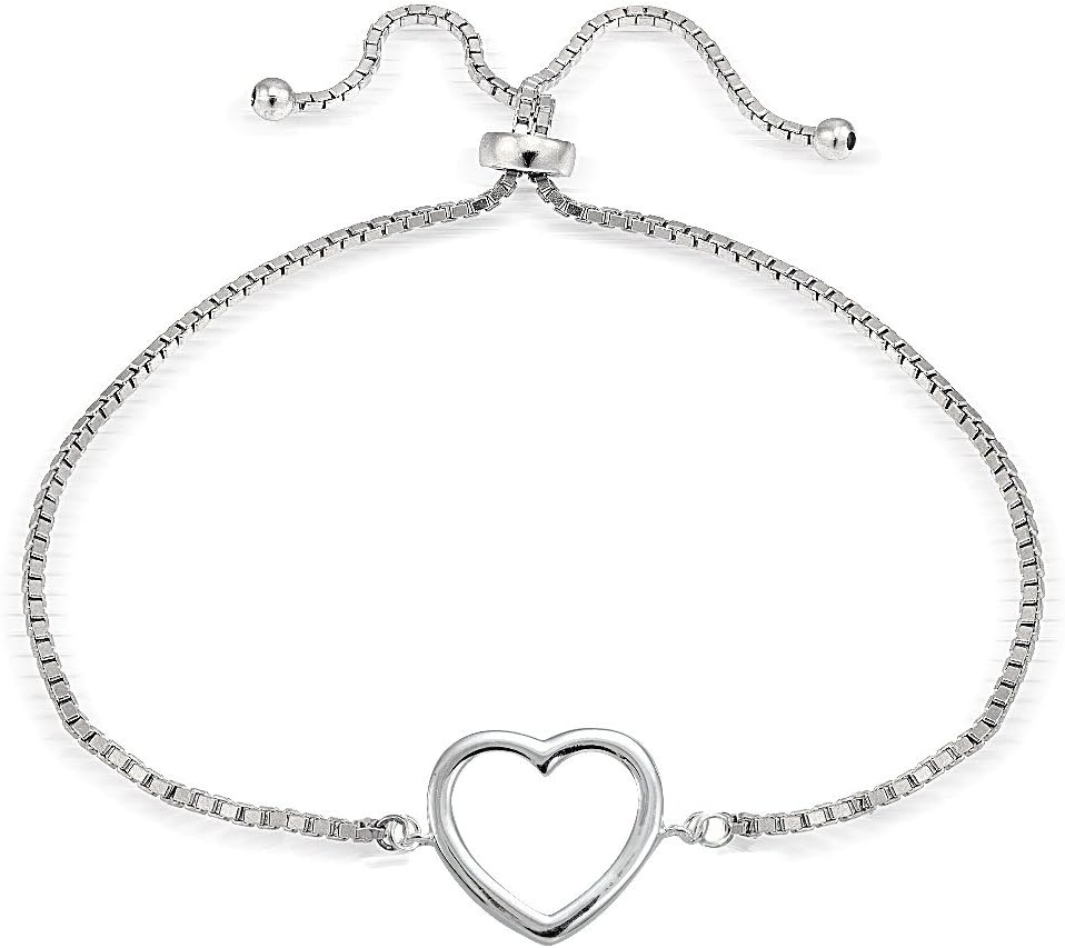Hoops & Loops Sterling Silver Open Heart Polished Adjustable Bracelet