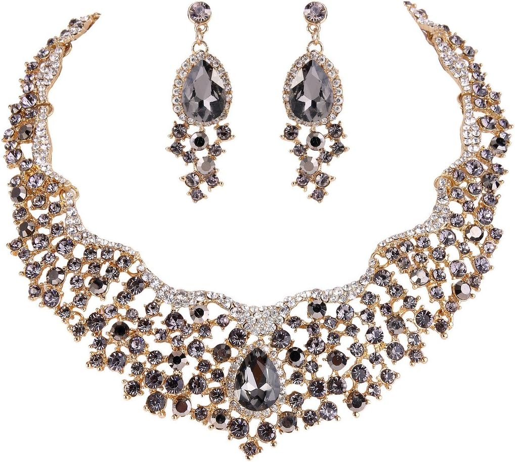 EVER FAITH Austrian Crystal Flower Cluster Teardrop Wedding Prom Statement Necklace Earrings Set for Women Bride