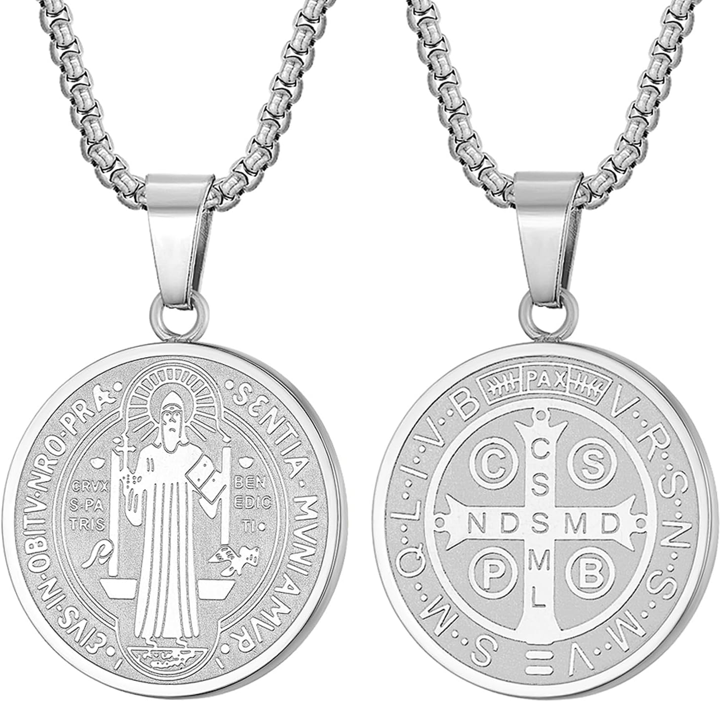 Yonhon St Benedict Medal Necklace Bracelet Stainless Steel Exorcism Catholic Gift for Men